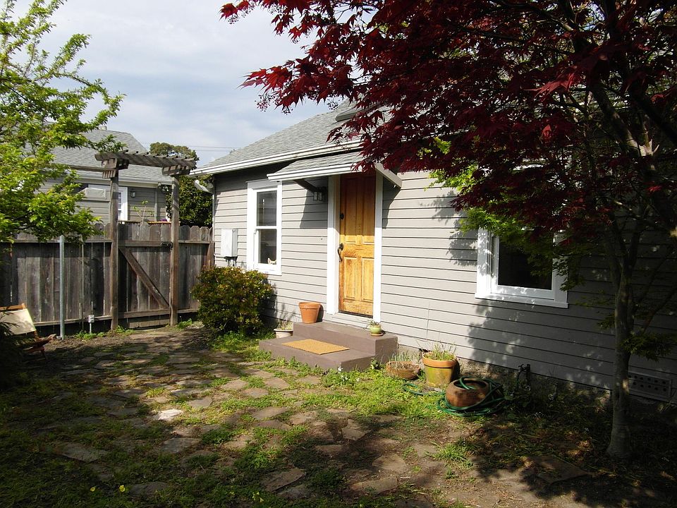 Studio cottage with private yard across from Bushrod Park. Vaulted ceilings, skylights, gardening space, new elements in kitchen. Laundry on site. Off-street parking for one car. Walk to Temescal and Rockridge. Quiet environment away from the street. No smoking. Owner pays water, sewer and trash.