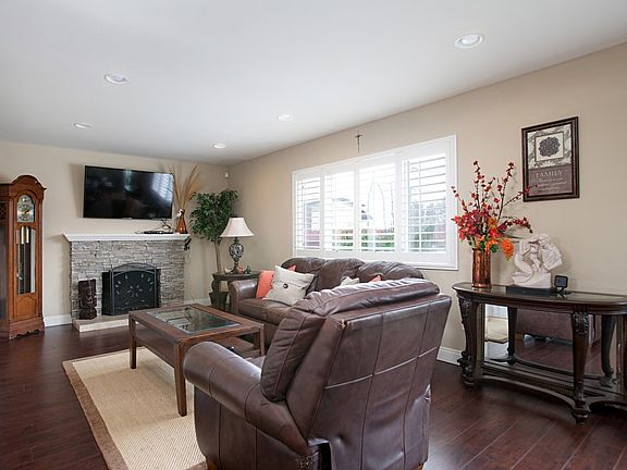 5 BEDROOM / 3 FULL BATHROOMS! PERFECT for FIRST TIME HOME BUYERS! NO HOA or MELLO ROOS! Great size FRONT & BACK YARD! UPGRADED kitchen with dark cabinets, STAINLESS STEEL appliances, GRANITE counters, TRAVERTINE floors, UPGRADED Laminate Floors. ENERGY EFFICIENT windows. New SHUTTERS on Windows all downstairs. NEW HVAC UNIT. LARGE LIVING room with cozy FIREPLACE. Bathrooms have brushed NICKEL LIGHTS & FIXTURES . BEDROOM DOWNSTAIRS + FULL BATH downstairs. We welcome VA & FHA!