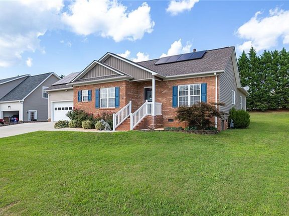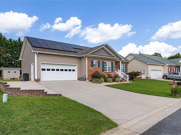 Check out this fabulous one level home in Kernersville. The kitchen has been fully updated and upgraded with quartz countertops, stainless steel appliances, updated cabinetry, tile backsplash, and new flooring. In addition, you have an updated primary bathroom. It is spa like with a tile shower and oversized soaking tub, dual quartz vanities, and new cabinets. The living room has new carpet and paint and vaulted ceilings. The split floor plan design is very convenient for guests. Outside you have an oversized brick patio, a private yard, extra parking pad, and storage shed. Don’t miss this one. It will go fast. In addition, the home has solar panels that are fully paid off giving you an incredibly low monthly electric bill.