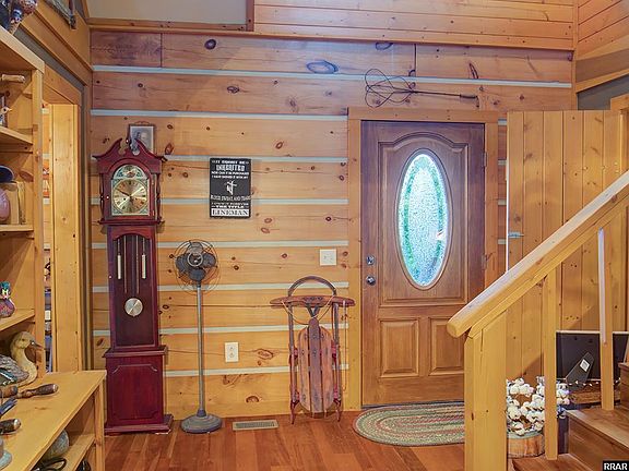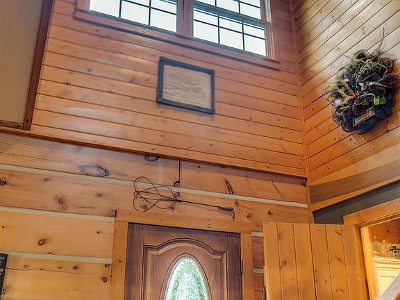 Custom-built log home, made of Eastern Pine. Has unfinished basement & woodstove - super clean. This home is one-of-a-kind; beautiful inside & out! Several barns & outbuilding, stocked pond, wraparound porches, & fruit trees. Additional acreage (approx 14.6+- acres) can be purchased. Buyer is responsible for checking square footage and acreage. Listing agency is not responsible for inaccuracies.