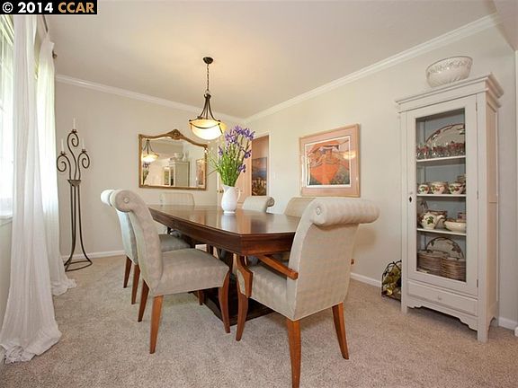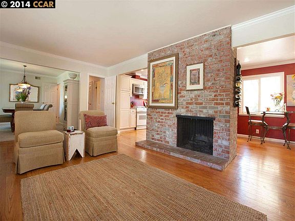 Situated on a wide countrified street within walking distance to Old Town Danville, this mid century home features a flat sprawling, extra large sod covered sun-drenched backyard. Great patio for entertaining with roll out awning. Over-sized swing set awaits small children. A special attraction is the short walk to Vista Grande elementary school. A most sought after neighborhood in Danville. You do not want to miss this country home. Used-brick facade accents the front of the home. Brick is the make-up of the two interior fireplaces. Original random plank hardwood floors provide a warm setting in the country kitchen, living room and hallway. Crown molding and canned lighting finish off the kitchen and family room! Views of yard from kitchen, family room, and master bedroom. Central air conditioning, dual-pane windows, two car garage, six panel doors, formal dining, open floor plan.