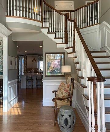 Set amidst mature trees on a well-manicured 2.2 acres, this stone colonial offers a flawless blend of classic elegance and casual chic. A thoughtfully designed living space, the kitchen offers a large island, professional stainless steel range, and custom hood, and together with the family rooms paneled ceiling and double sided fireplace, offer a welcoming space for family and friends to come together. For formal gatherings, the custom moldings of the living room and dining room, a butlers pantry and a second fireplace lend a hand to the entertaining possibilities this home holds. The 5 bedrooms on the 2nd level mirror the exceptional design of the 1st floor and boast a large master bedroom, sumptuous master bath and dressing room. And not to be overlooked is the lower lever with an oversized wet bar with space for 3 flat screen TVs, game area, an in-home 7 seat theater and plenty of room for outside enjoyment on the oversized patio with built-in island and gas grill.