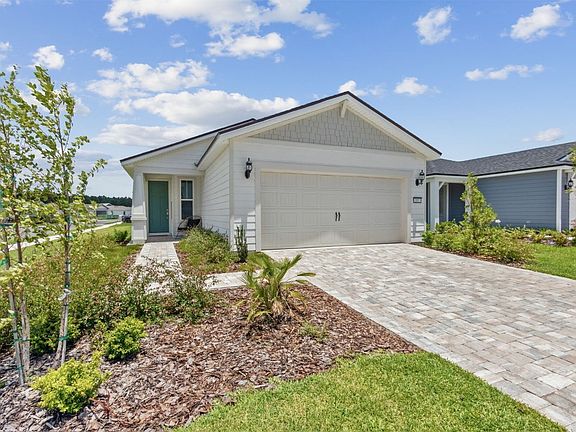Come and enjoy the Del Webb Wildlight lifestyle without having to wait for new construction! This newly built open floor plan home has beautiful LVP in the main living area, SS appliances, light fixtures and ceiling fans, covered paver patio that is already plumbed for your future outdoor entertaining and a fenced-in backyard. The flex room is ideal for an office or extra space for guests, too. The Horizon Club is perfect for those who want an active lifestyle such as Pickle Ball, Aquarobics, Fitness Center, Walking Trails and a variety of other group interests!