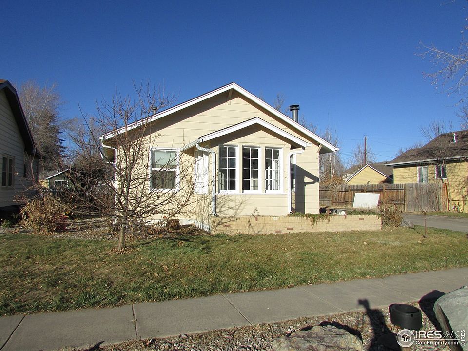 Wonderful Old Town Charmer in downtown Loveland includes 3 Bdrms. 2 baths, refinished hardwood floors, new roof and gutters, wood burning stove, bright open floor plan, new exterior & interior paint, updated kitchen w/ newer range and dishwasher, new hot water heater, two bedrooms on main level and remodeled full bath, finished basement w/ bedroom, office, kitchenette and 3/4 bath, some windows have been replaced and more. Detached oversized 2-car garage. Mature landscaping w/ covered patio, fruit trees and fenced back yard. Lovely location close to schools and parks. Walk to downtown restaurants and entertainment. A Must See!