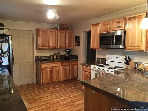 If you're looking for that low maintenance, starter home, here it is! The 2 bed/1 bath home was recently remodeled (2015). The remodel included installing a completely new kitchen (to open up the floor plan), updating the plumbing, updating the flooring in kitchen, living room, bathroom, and utility room. The updates to the flooring include waterproof flooring in the bathroom and utility room, to prevent water getting into the subfloor in the occasional water spill. The new kitchen has very nice solid Hickory cabinets and marble tile countertops. The sale of the home will include all the appliances - fridge, range, dishwasher, microwave, and even the washer and dryer!! The home is heated with electric cadet heaters and plug in heaters. The plumbing was updated throughout the home, and heat tape was applied to all of the pipes under the home to prevent freezing in the winter time. The home has a metal roof and wood siding. The yard is fenced for privacy, and even has a gate with wood fencing to close off the driveway, and matches the rest of the fencing when closed. The yard has plenty of room for children to play, or keep your pets. There is a single car garage with room to store the extras. This home is located in the floodplain.