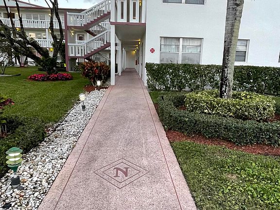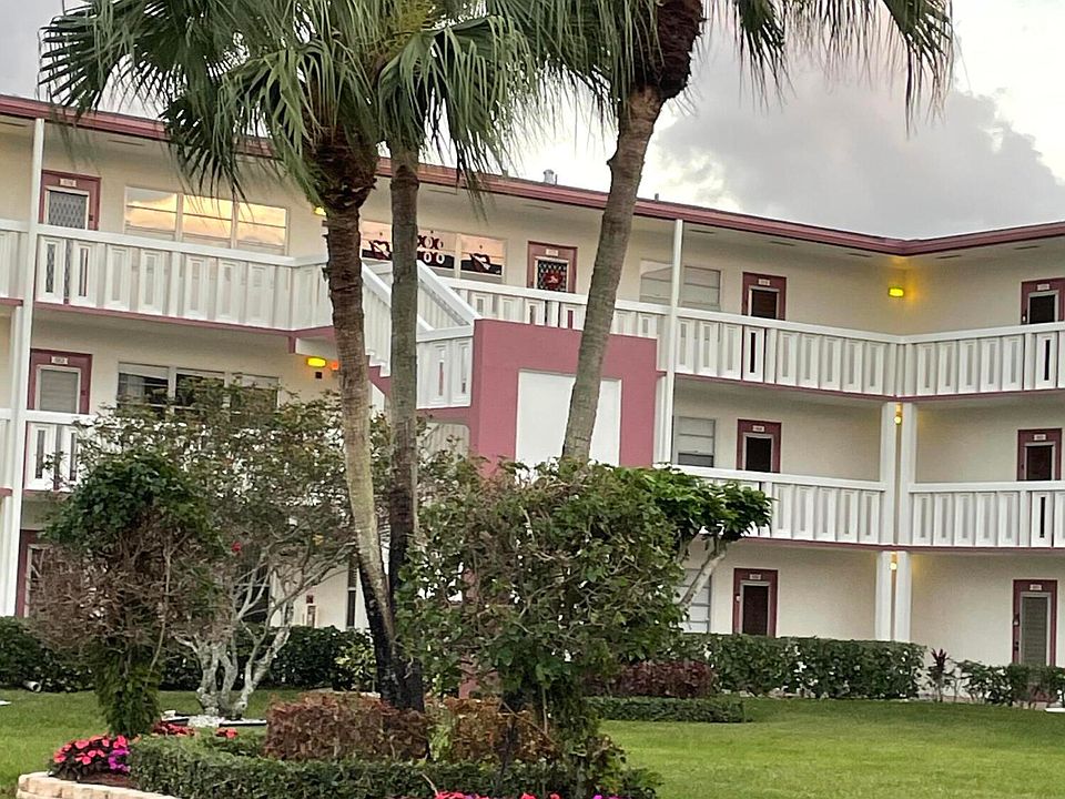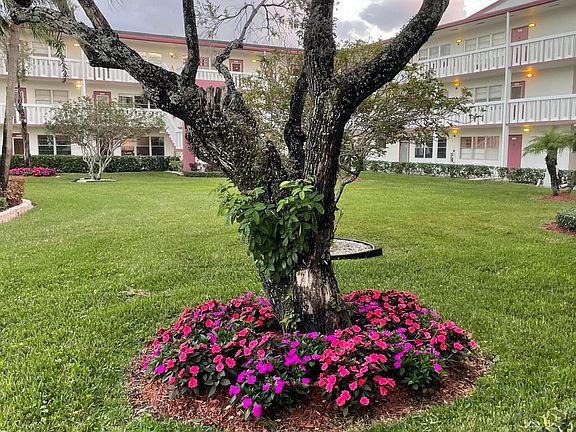 Extremely bright and cheerful garden apartment first floor corner unit. One and and half bathrooms were just remodeled. The entire condo was just painted, there is new carpet and it has new window treatments. The kitchen is spacious and has all Stainless Steel appliances including a dishwasher. The master suite has plenty of closet space with a nice sized walk in closet. The home has assigned parking and a free bus service off and on premises. There is storage just outside the unit on the outside porch.The condo is in a safe and quiet neighborhood. The home has hurricane panels. There is a clubhouse which includes a pool, gym, cardrooms, and tennis courts. Clubhouse also has professional entertainment. An additional pool is also adjacent to this condominium. Plenty of golf courses in t immediate area, all houses of worship so close by apartment comes furnished or unfurnished. This gem will sell fast!