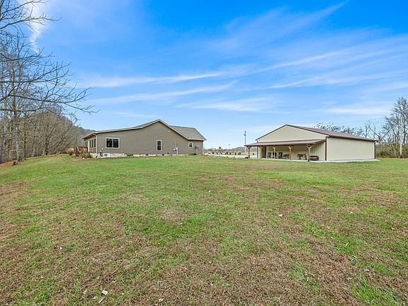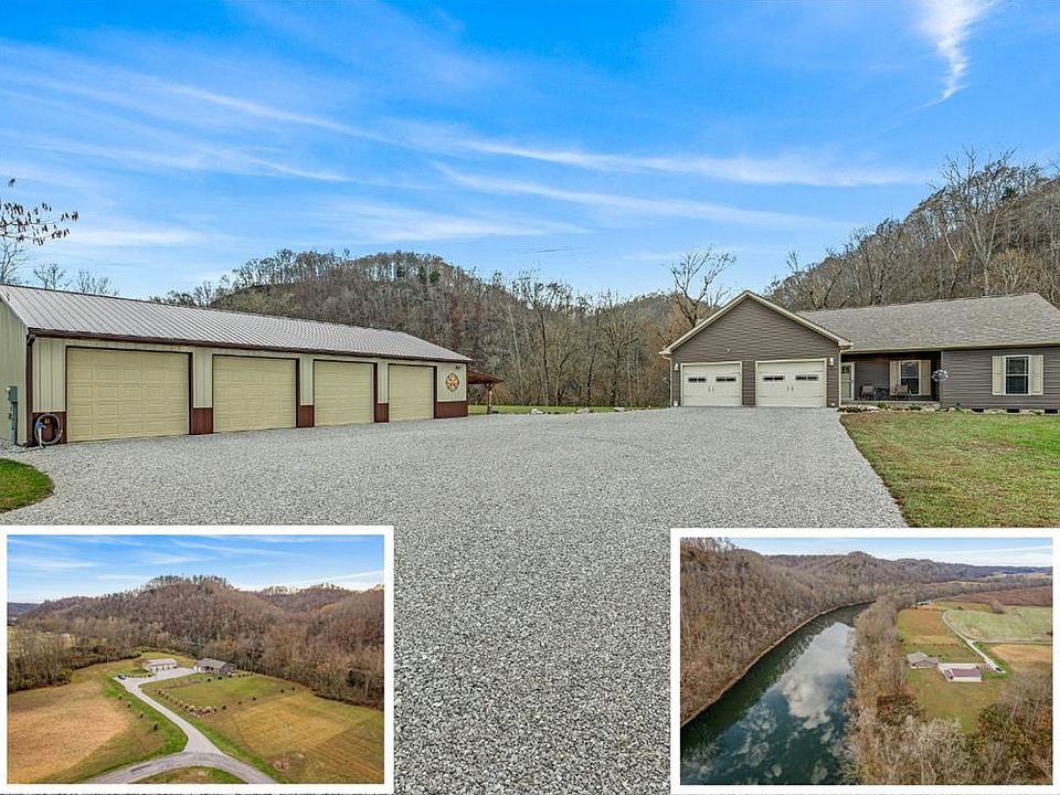 "Heaven is a little closer in a home by the water“ perfectly describes this Cumberland River front paradise. Built in 2019, this like new home looks barely lived in and is perfectly maintained. Location is to die for. Over 400 feet of Cumberland River frontage on almost 2 acres of peace and quiet. Home is beautiful with Your favorite features including pine T and G sunroom (XL hot tub) for maximizing water view enjoyment, open floor plan concept w/spacious living, dining and kitchen (granite tops stainless whirlpool appliances, gas range, pantry) is all sure to please. Master suite is roomy and just enough. Both bdrms have walk in closets and baths have walk in showers. Super great bonus is the detached garage with 4 bays (36x56, 4 car capacity, 200 amp svc & lighting, 50 amp ext. Outlet) concrete floor and covered patio area. DHL with three marinas just 15 to 20 minutes away. City services for healthcare and shopping just 15 minutes. This home sweet home is just about perfection