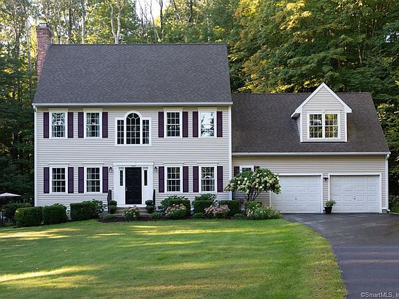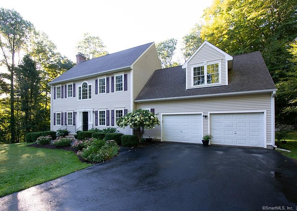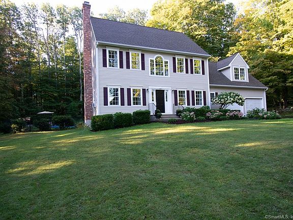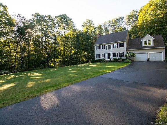 Privately situated on a scenic road on two level acres with stone walls - this traditional Colonial offers new hardwood floors, new carpeting and a freshly painted interior! The fireplaced Great Room features nine foot ceilings and is open to a spacious kitchen with newer stainless steel appliances, dining area and a slider to the rear deck. A convenient mudroom entry offers a designated laundry room, tiled flooring plus a half bath. The Primary suite is located over the garage and boasts TWO extra large walk-in closets and a double vanity bath with jetted tub/shower! The piece de resistance is a 16 X 32 HEATED SALT WATER inground Sabrina pool! This professionally maintained liner pool comes complete with wrought iron fencing and concrete surround decking. Vacation at home in this peaceful backyard setting complete with mature shade trees, professional landscaping, flowering perennials and a sunfilled area to catch some rays! Dog walkers and hikers will appreciate the wooded trail located just one minute up the road!