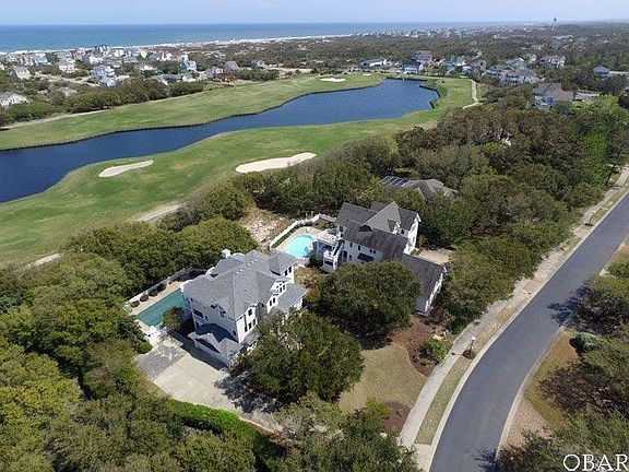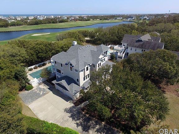 EXQUISITE GOLF COURSE HOME IN THE CURRITUCK CLUB!! Complete with views overlooking the Fifth Hole. You will find spectacular fine crafted tile work throughout this 10 years young home. Greeting you at the top of the staircase is a unique stone fireplace which soars to the very top of the room. Light....lots of Light! Great room is appointed with custom cabinetry, surround sound and stunning one- of- a- kind light fixtures. Natural trim, 6 paneled doors and wainscoting accentuate the quality construction by Seagrove Homes. A shipswatch has been transformed into a separate office with impressive furnishings. Delightful kitchen...granite counters, stainless appliances, custom cabinets, pantry, pendant lights and bar seating. Top master has a striking, huge tiled shower, soaking tub, walk-in closet, corian counter top and new carpeting. Mid level has 4 Br and 3 full baths. 3 Masters. Oversized decking is accessible with stairs leading down to the pool. Ground level sports a large game room with custom built-ins and a full bath, convenient to the pool. 2-car garage. Beautiful pool is remarkably large and the surrounding area is tastefully landscaped. Heavy duty deck furniture on the decks and around the pool. Hot tub. Gas grill. Irrigation. "Fairway to Heaven" is a hole in one!! Grab your bag and walk out to Hole 5 of the noted Rees Jones golf course!