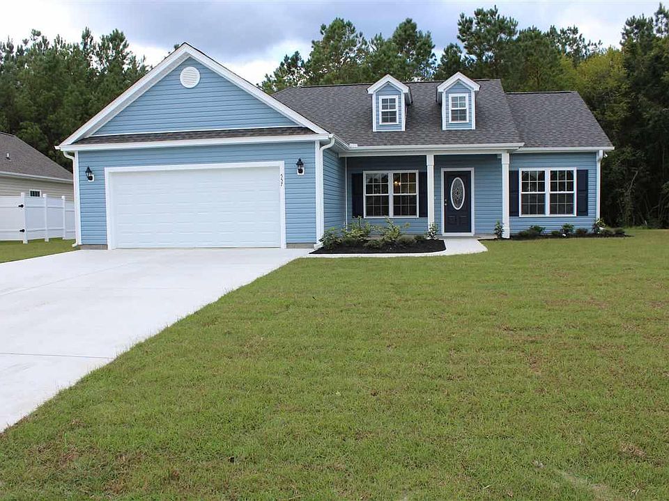 Popular Hickory 70, with open floor plan, split bedrooms, large relaxing front porch. Dining room has tray ceiling. Spacious kitchen has wrap around breakfast counter, breakfast nook, lots of counter top space and solid wood cabinets with crown molding and knobs, black appliances. Private 12' x 14'4 Master suite with vaulted ceiling, ceiling fan w/light, huge L shaped walk-in closet, two sinks, raised height vanity, comfort height commodes, 6' whirlpool tub plus a separate shower. Enlarged screened porch and concrete patio. Smooth ceilings, 30 year Architectural roof shingles, cottage style doors, gutters, sodded yard, fully finished 21'4 x 20' garage with automatic door opener, pull down stairs to attic storage. Close to Myrtle Beach and North Myrtle Beach (Hwy 22 and Hwy 9), shopping, dining, etc. Photos and video are for illustrative purposes only and may be of similar home built elsewhere. Square footage is approximate and not guaranteed. Buyer is responsible for verification.