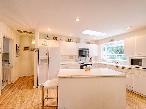 Meticulously maintained summertime residence since 1998. Great room includes kitchen with garden window, dining and living. Thoughtful floor plan with owners suite and 2 guest rooms at opposite ends of the house! Large sunny deck and beautiful gardens with mature blooming shrubs & trees. Easy care landscaping is professionally maintained all year round. Laundry room & 2 car garage.