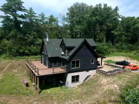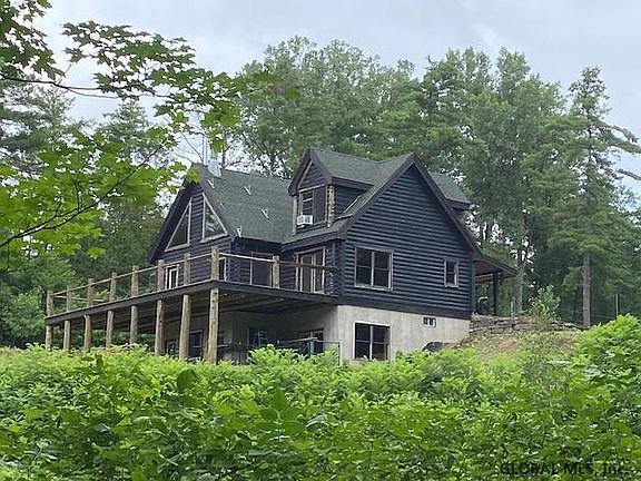 Beautiful Custom Built Log Home with 3 bedrooms, 2 baths, 4000 sq. ft of living area, high end Heart Land appliances out of Canada in the kitchen with a electric fireplace in the cabinet, 6 x 8 exposed yellow pine beams. From the Kitchen one enters the great room with cathedral ceiling & a beautiful stone fireplace with copper wood boxes, from the great you enter the living room with a Lake Placid fireplace, French doors open to the large deck area,. Yellow pine stairs lead you to the 2nd level with yellow pine flooring with 2 bedrooms 12' x 24' each which can sleep many with bunk beds or one can convert each double bedrooms making 4 bedroom upstairs. On the 2nd level is a custom bathroom with barrel sink , electric fireplace & shower. Nice closet area. As you entered the finished base