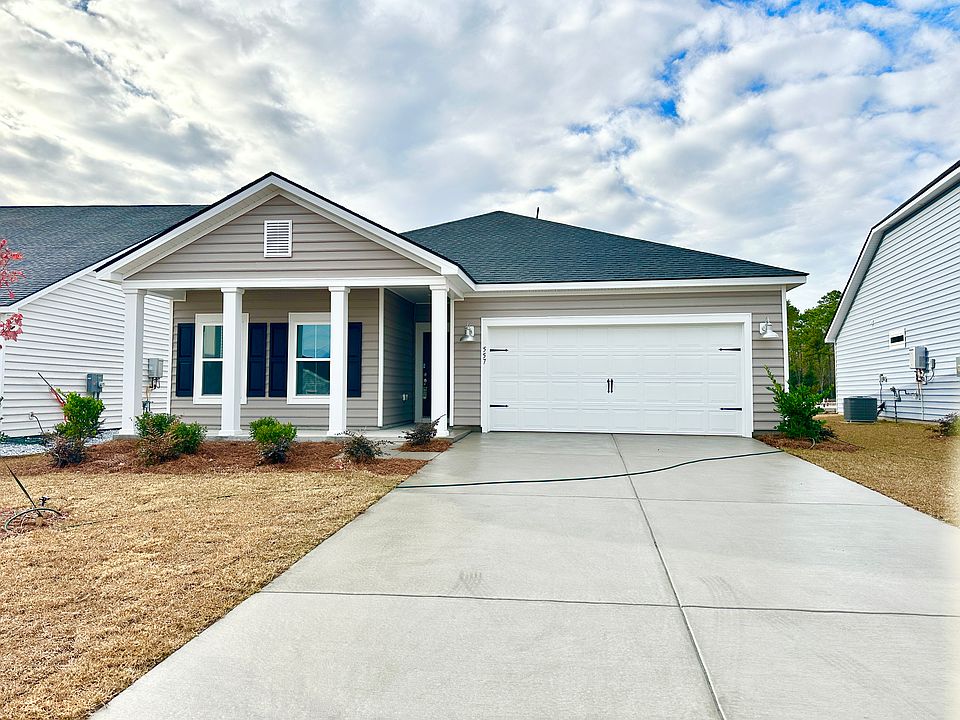 This home features 3 bedrooms + office and 2 baths room with a private fenced back yard offering spacious and comfortable living. The kitchen showcases granite counters and a stylish tile backsplash adding a touch of elegance to the heart of the home. Laminate flooring graces the main living areas, providing a seamless and low-maintenance space. The bathrooms and laundry room boast attractive tile flooring, combining both style and practicality. The owner's suite features a fully tiled shower with a glass door, creating a luxurious retreat. In addition, this home includes a formal dining room and a charming breakfast nook, catering to various dining preferences. Step outside onto the covered back porch and enjoy relaxing outside. The 2-car garage provides ample parking and storage space. For enhanced convenience and energy efficiency, a Rinnai tankless water heater is included. The community comes with a swimming pool. Excellent school area! Life is super convenient, Publix, Kroger, Costco, Walmart, many restaurants, banks, clinics, post office, etc. are all 2-10 minutes away. Located off of 501 across from the Tanger Outlets, behind Krispy Kreme. From 501, turn onto Las Palmas Dr and follow the road straight back, then turn left on Azalea Bloom Ave. The Landlord need tenants credit score 640+ and income to rent ratio of 3.5+.