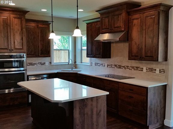 Better than new 2016 home in desirable Carlton neighborhood. Excellent floor plan with nine foot ceilings on main level, vaulted flex space with french doors and open great room. Kitchen features quartz countertops, corner pantry, tall cabinets and large island opening to dining and living rooms. Upstairs with four bedrooms (4th bedroom has no closet, could be bonus room) and laundry. Master suite with soak tub and walk in closet. Covered patio in backyard for entertaining, raised garden beds.