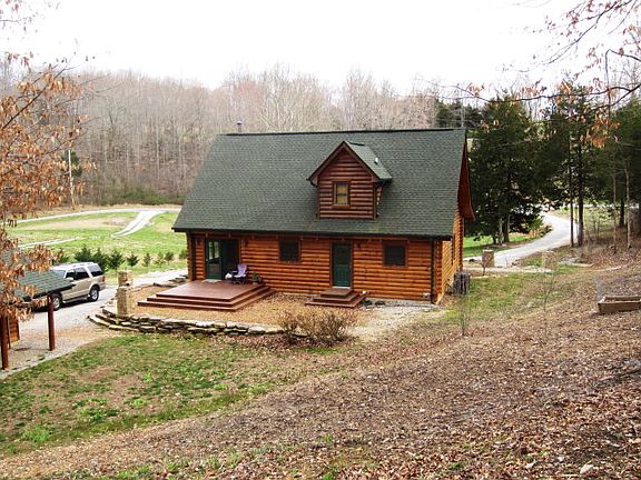 This 3 bedroom 3.5 Bath Lincoln Log Home is located in the Scenic Cave Valley Subdivision conveniently located within 5 miles from Marinas and the town of Byrdstown, The home has approx 3000 sq ft of living space with 2 levels and a finished basement. Home has hardwood, tile, & carpet floors, Kitchen has Kraftmaid Cabinets with self closing drawers and solid surface counters. Kitchen also has stainless steel Refrigerator, Gas Range/Oven, & Dishwasher all Kenmore brand. There is a wood burning stove built by Hearthstone in the Kitchen/Dining/Living Room area that will heat the entire main and upstairs level. The home has stack washer & dryer in the main level laundry area. The city water is heated with a gas tankless water heater, The 2.14 acre lot also has a 28'x28' detached garage with a 12'x28' bonus room that would make a great office or hobby room. Enjoy you property from the covered front porch or open back deck.