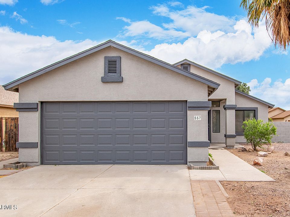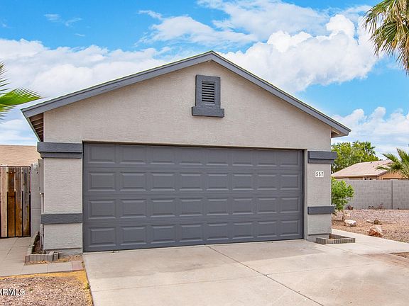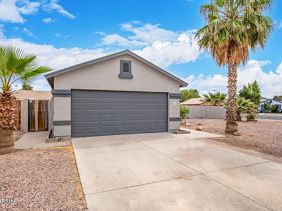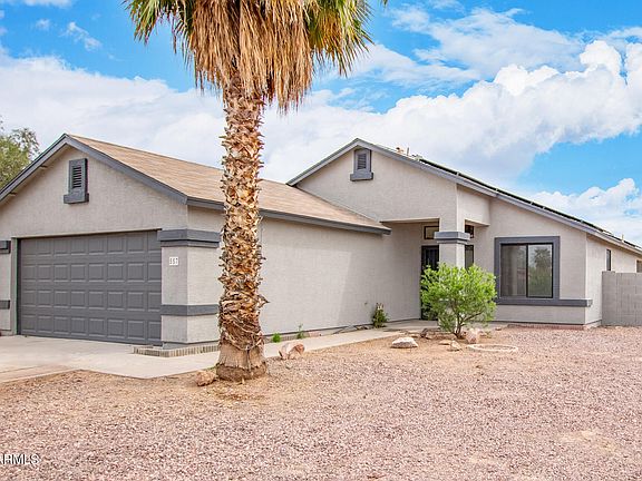 MOVE IN READY remodeled home in a excellent buckeye location. Tastefully updated interior is composed of wood look flooring t/out the main areas with plush carpet in bedrooms, high vaulted ceilings, bright neutral paint, and ceiling fans all assist in invoking a comfortable and airy vibe. Just off the living room, you'll find the kitchen showcasing popular white cabinetry, SS appliances, pantry, and striking quartz counters w/peninsula breakfast bar flowing into the dining area and family room. Spotless main bedroom ensuite features dual sinks, sleek black hardware, a tub/shower combo, and a walk-in closet. The oversized backyard includes a covered patio and tons of space. All this on a premium cul-de-sac! Don't forget the RV gate and paid off solar panels! Must see!