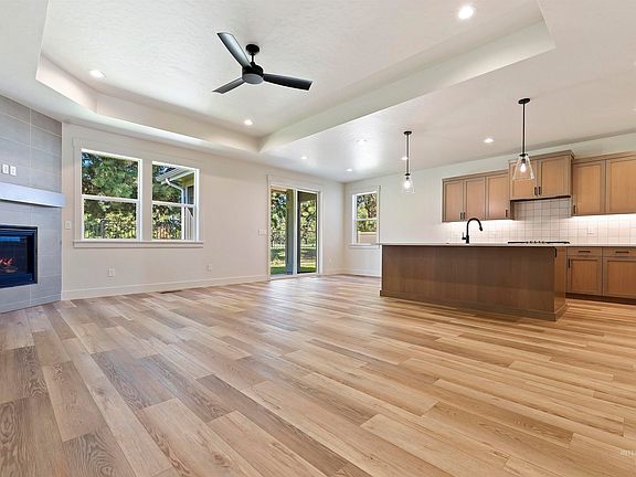 Residence 1 by Sterling Homes is an open efficient floorplan is living at its best. Perfect for everyday living, the open concept layout is functional with the feel of a large home featuring an 11 foot ceiling extending from the front entry thru to the Great Room. Luxury vinyl plank floor, high ceilings and a neutral color scheme are some of the finishes you will find. The Kitchen features a large center island w/quartz countertops, beautiful wood cabinetry, built in stainless steel appliances with modern lighting. Sliding glass door opens to a beautiful covered patio with views of the Eagle Hills Golf Course. Built with and RV Garage this home provides all the storage you will need. Come visit Sterling Heights a beautiful new premier Sterling Homes community adjacent to Eagle Hills Golf Course. Sales Office located at 557 N Hiltonhead Way in Eagle, Open Thursday thru Monday 10am - 6pm; Tuesday and Wednesday by appointment only.
