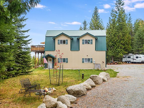 Stunning views from this home on 23 acres with Water & Mountain Range views! Beautiful acreage mostly all usable with mature trees & privacy. Built in 2004; larger kitchen with plenty of room for an island, an inviting living room with vaulted ceilings complimented w/rustic beams, cozy wood burning stove & 2 bedrooms and 2 bathroom. Over-sized 2-car attached garage . Additional house sites with Lake Pend Oreille views. A natural paradise of level rolling land. Located near Springy Point beach and its boat launch for swimming, boating & endless opportunities for enjoyment. This peaceful setting is the perfect place to live and/or build your North Idaho dream retreat. Great price, for a slice of North Idaho.