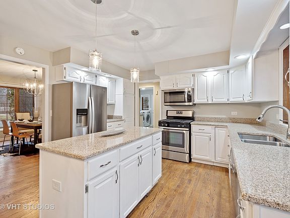 Barrington Village gem will exceed your expectations! This charming 3 bedroom/2.1 bath home with fantastic updates and lots of natural light features a large eat-in kitchen with brand new granite counter tops, center island, new lighting, stainless steel appliances and hardwood floors. Family room with newer carpet and brick fireplace. Upstairs features a beautiful master suite with luxury bath, a separate soaking tub and shower. Second bedroom has access to large bonus space - ideal for storage or play/rec room. Freshly painted in today's desired colors and modern finished basement with painted exposed ceiling plus tons of storage! Fully fenced back yard, first floor mud/laundry room and rare 2 car attached garage. Don't miss this opportunity to be in town and have access to great amenities and schools!