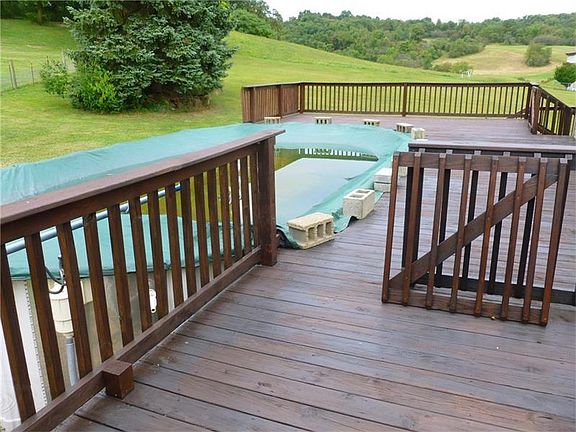 Spiffy ranch in a near 1 acre setting overlooking pastures. Modern, fresh paint and large Master bedroom and bathroom. Open floor plan, finished gameroom easily allows for a 3rd bedroom area. New carpet by Molyneaux with transferable warranty. New windows. Vinyl siding only 5 yrs. old. Pool is 33'x18 with xlarge deck surround 39'x24'. Level entry covered Patio 31'x10'. Lots of parking Covered front porch 15'x8'. New laminate. Ceramic tile in the kitchen,family room,powder room,and laundry. Brand New Heat pump. View of horses, pastures and goats. Lots of running room for kids and pets.