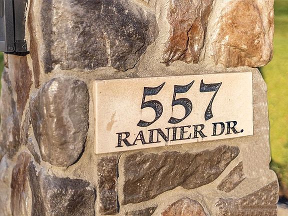Welcome to 557 Rainier! When you pull up to this meticulous home with beautiful landscape & retaining wall you will be in aww! As you enter the home, you will be awestruck by the updated kitchen with diamond like granite counters and custom-made cabinets. Look around the cabinets for special features such as kick drawers in the island & also a hidden spot for cooking utensils. The pantry will illuminate when you open it to find that special can good. The island is a great place to eat dinner or to have friends gather. The light-colored floors are inviting & warm along with the natural light that comes through the double patio doors & the bay window. The Owner's bathroom was spared no detail when updated, the glass has a pop of color to brighten the ambience. The large family room boasts a gas fireplace that will be cozy on a winter day. A cool feature of the garage is the floor coating is glow in the dark! By the way the garage is also very spacious and has great storage as well.