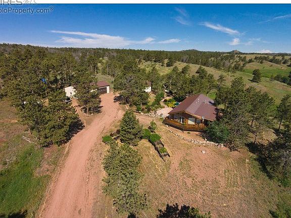 Nested in the mountains, this incredible property offers some of the most diverse and beautiful terrain in Northern Colorado. Situated on 40 acres, enjoy the peaceful sound of birds chirping, elk bugling and the stream winding through the meadow. Gorgeous rock outcroppings and stunning views can be appreciated from the wraparound deck. 30x48 garage/shop, shed and greenhouse too. Relax in this cozy ranch style home with plenty of windows to take advantage of your amazing surroundings.