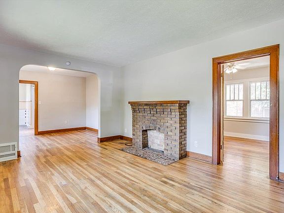 Back on the market, at no fault of Seller!!! Brick bungalow located on a corner lot with a large sized covered porch. Home boasts original wood flooring and vintage glass doorknobs! Step into the inviting living room with a decorative brick fireplace and large windows that provide an abundance of natural light. Open area dining room leads to the kitchen that includes a coffee bar area, pantry and gas range. Two bedrooms and a bathroom with tub/shower combo and classic subway tile flooring, completes the main floor. Downstairs is a rec/family room, bonus room with double closets, half bath and a separate laundry area. Home includes an oversized detached garage, fully fenced yard and concrete patio. Fresh interior paint throughout, including the kitchen cabinets and new exterior door complete this gem. Home is just waiting for its new owner!