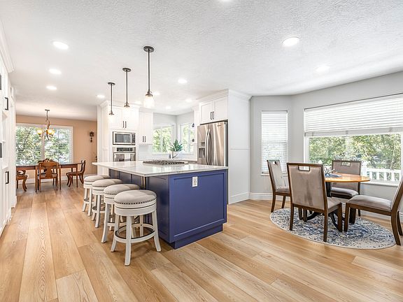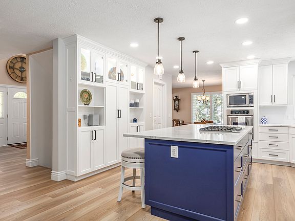 Meticulously maintained and thoughtfully updated, this stunning property is truly one of a kind! Step into the gorgeous remodeled kitchen featuring high-end cabinetry, quartz countertops, and durable vinyl plank flooring. The spacious 4-car garage-plus RV parking-offers ample room for all your vehicles and toys. Enjoy the cozy fireplace in the master bedroom, complete with a beautifully updated ensuite bathroom and private balcony retreat. The home features two furnaces and A/C units for year-round comfort, and a central vacuum system adds convenience throughout. The nearly full kitchenette in the basement makes entertaining or hosting guests a breeze, while the home offers plenty of storage space to stay organized. Outside, the secluded backyard feels like your own private mountain retreat, with a serene water feature adding to the peaceful ambiance. Perfect for entertaining both inside and out, this home also includes a lifetime warranty on upgraded gutters designed to prevent buildup, giving you peace of mind for years to come. This is more than just a house-it's a lifestyle.