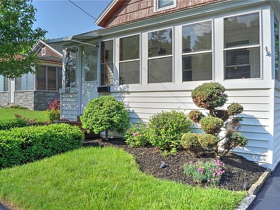 Nothing to do! Move in & enjoy this LOVELY home - COMPLETELY "NEW" in 2013. Only things not replaced - roof & siding, which are in great shape! What's new? Everything!! Electricity (from meter throughout house), PEX plumbing (from meter throughout house), boiler system (antifreeze enhanced), ht wtr heater, insulation (entire house). House was totally gutted so baths, kitchen, all walls, floors, fixtures, appliances, cabinets, closets etc are new. Meticulous owners thought of everything: recessed lighting (all LED - never replace a bulb), surround-sound built into the ceilings, whole house cable, security system, TVs in kitchen and master bath (staying with the house). Walk-in closets in both BRs. Note: House originally had a 3rd BR on 1st floor. It was removed to create open-concept living but just adding 2 walls will bring it back. Full BA & laundry provides one floor living if needed. AWESOME EXTERIOR! Beautiful landscaping w/ LED lighting on timer. Relax on freshly painted deck overlooking fully fenced, very private back yard w/ firepit, lush garden & plenty of room to play or wave to neighbors from enclosed full front porch. Plenty of off-street parking on newly sealed driveway