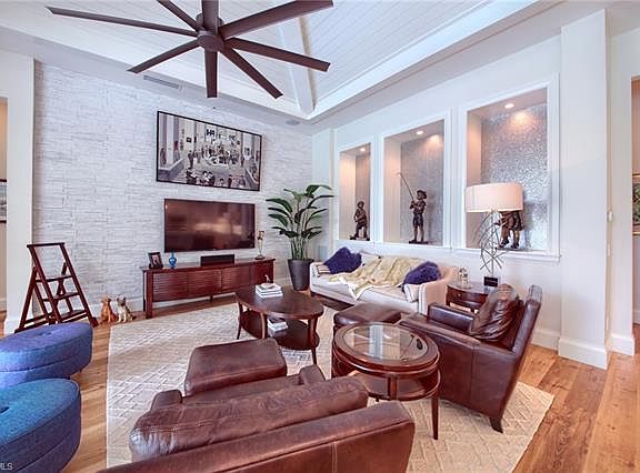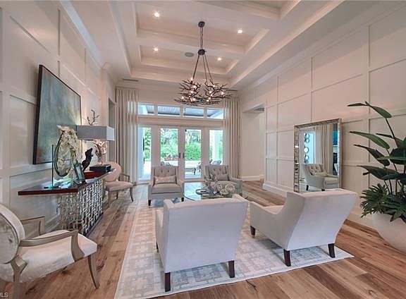 This Moorings home embodies a tropical divinity only possible because of the winning team handpicked by developer, Buz Berson. The one story floor plan is designed for relaxation, using ultra-luxe materials and naturally is one of a kind. The charming surroundings (approximately 17,000 feet of property!) framed with magnificent banyan trees provide a harmonious inviting energy. There is no doubt that the neighborhood vibe (south of Mooring Line Drive) is a visceral connection to the sea glowing beach atmosphere. Your senses will experience a blend of coastal glamour, luxury and sophistication where you feel that every day is sunny and delicious! Come discover the Moorings beach life in motion, providing connection without congestion.