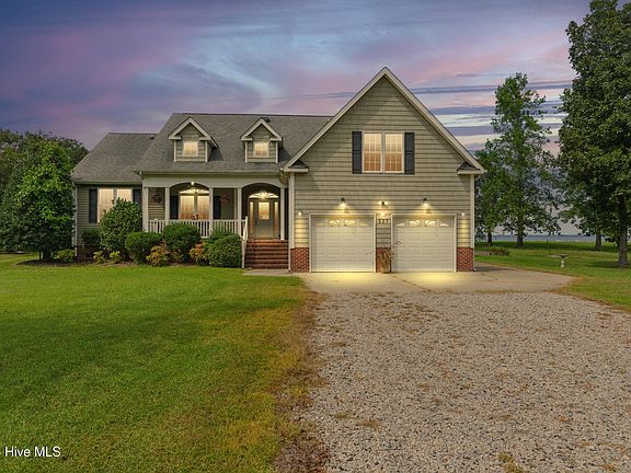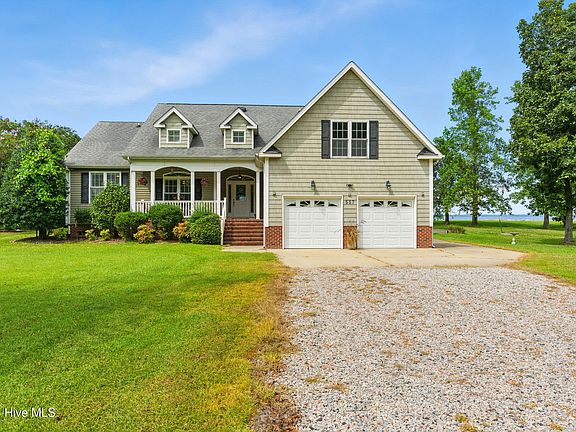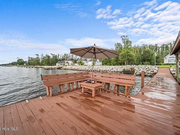 Waterfront Living at Its Finest on the Albemarle Sound! This beautifully maintained home sits on a spacious 1.3-acre lot and offers everything you need for relaxed coastal living. Enjoy direct access to the water with a private pier featuring a large sitting area and a covered boat lift with dual motors—accommodating large boats. The low maintenance rip rap bulkhead ensures protection against any storms or erosion.