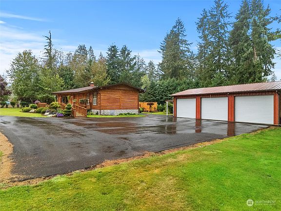 Country living in this one of a kind LOG CABIN style, open concept home, situated on 5.35 ACRES! One detached garage AND one shop with insulated additional living space! Detached garage has 3 bay doors, while the shop contains plenty of space for wood work, extra parking, generational living, etc! Cedar deck that nearly wraps all the way round (5yrs old). Roof with still plenty of life (9 yrs old). Home wired for generator. Newer windows, tankless water heater, shower remodel in guest bathroom, risers on septic, insulation in crawl space! All the room to continue/start gardening and beautiful landscaping! All appliances stay! Enjoy the space and calmness this home and property has to offer while being just a few minutes drive from I-5!
