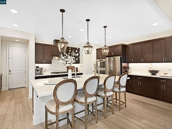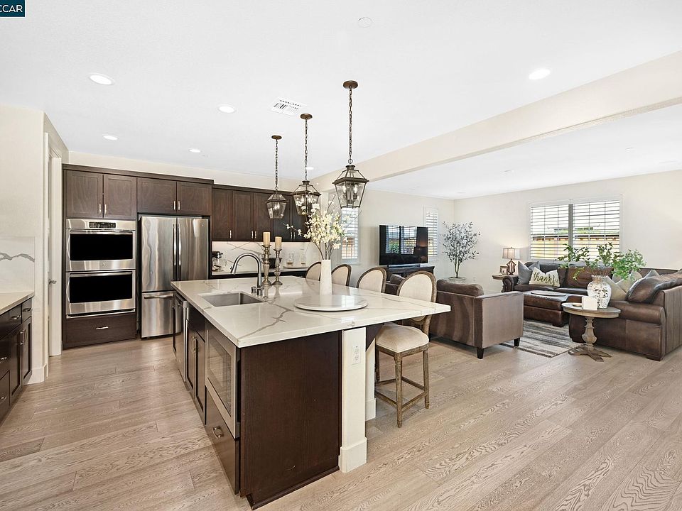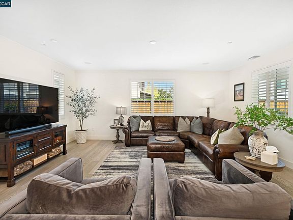 OPEN HOUSE - Sun. (5/7) 1:30 - 4:00. You won't find more bang for your buck than this stunning newer home in the popular Wayland community in Livermore! With all the bells and whistles, this fabulous family home has nearly $100,000 in upgrades and features Plantation shutters, upgraded light fixtures, indoor and outdoor built-in speakers, custom crown mouldings and woodworking, 2 whole house fans and upgraded flooring, including gorgeous white oak hardwood floors throughout the downstairs and 2-yr. new upgraded carpet upstairs! Enjoy the gourmet kitchen complete with quartz counters, recessed lighting, huge island w/sink and custom pendant lighting, soft-close cabinets and drawers, walk-in pantry and stainless steel appliances, including 5-burner gas stove and double oven! Truly a fantastic floorplan with one/bed bath down ideal for home office or in-law set-up, 3 more bedrooms and a spacious loft upstairs, extra storage area beneath the stairs and a large kitchen and family room area ideal for entertaining or enjoying family fun! The comfortable rear yard features a California room with covered patio, ceiling fan and built-in speakers!