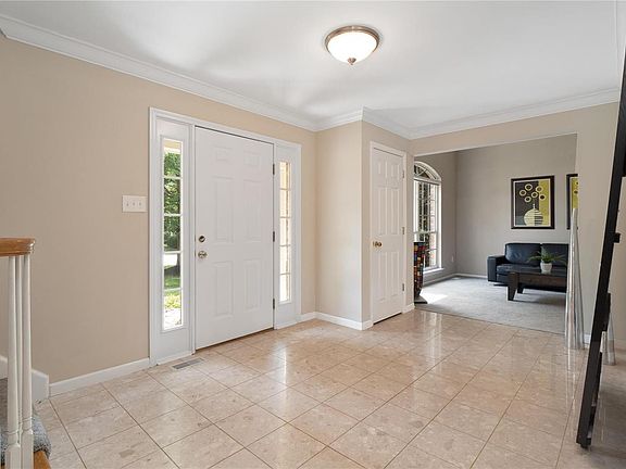 Impeccable home on culdesac in desirable Westbrooke Woods Subdivision. Enter beautiful home to marbled foyer flanked by formal dining and living room. Great room has built in bookshelves, maple wood floors and open to kitchen with white cabinets, granite tops, tiled backsplash and stainless steel appliances. Kitchen has sliding glass door that opens to huge deck and wonderful view from top of ridge to woods. Huge master suite with his and her closets, view from bay window, separate tub and shower. Walk out lower level features rec room, gas fireplace, wet bar, separate office, 4th bedroom and storage. Gas stubbed to deck for easy grilling. LL speakers, TV, surround sound stay with home.