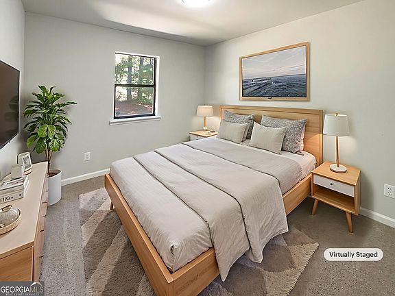 Welcome to 5570 Butner Rd, a beautifully updated 3-bedroom, 2-bath split-level home nestled on a 1-acre wooded lot in South Fulton. This home offers a perfect blend of privacy, comfort, and convenience-making it an exceptional find. Step inside to a bright and airy family room centered around a cozy fireplace, creating a warm and inviting space for everyday living. The dining room seamlessly connects to the family room and opens through sliding glass doors to a brand-new deck, where you can enjoy peaceful views of the mature trees and private backyard -ideal for outdoor dining, entertaining, or simply relaxing. The kitchen features white cabinets, stainless steel appliances including a gas range, and a pantry for extra storage. The primary suite features a walk-in closet and a private bath with his-and-her sinks. Two additional bedrooms and a full bath provide comfortable accommodations for family or guests. The finished lower level offers a spacious bonus room, perfect for a home office, media room, gym, or playroom. This home is move-in ready and packed with recent upgrades including a new deck, new flooring, fresh paint, new roof, and new garage doors, offering both style and peace of mind. Situated on a 1-acre wooded lot, this property provides a serene natural setting while still being minutes from Camp Creek Marketplace, I-85, and Hartsfield-Jackson Airport. A rare opportunity to enjoy space, updates, and a great location all in one.