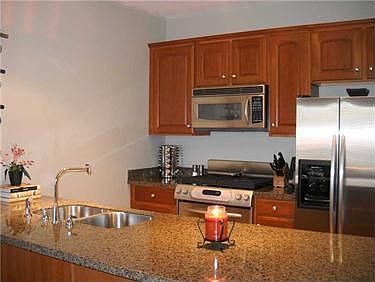 Fantstic Open LR,DR,Kit.combo/private rooftop terrace.Custom Blinds. Kit/granite counters, stainless steel appliances and beautiful cherry cabinets. Cherry HW Flrs thruout Living Area.New Carpet in BR. Lg Bathrm/ceramic tle & hidden laundry area. Bath leads to enormous custom walk-in closet/cherry stained drawers, hamper, & bi-level hanging area.Bldg. amenities incl.fitness rm, party rm, & guest suite.Market District below.Parking 2 spots from door.Close to nightlife,restaurants & all types of shopping.