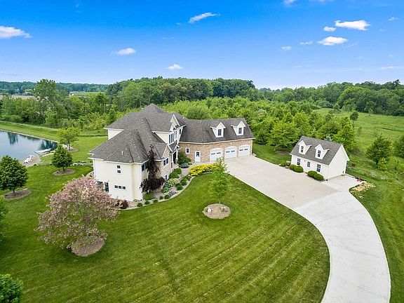 Who can boast of a Huntertown address with Noble County taxes in this true one-of-a-kind, custom built estate located minutes from Dupont? YOU can, and still be surrounded by the privacy and quietness that only 12.4 acres, with a beautiful 3 acre pond, could provide. With over 4,500+ Finished Square feet, you'll find retreat both inside and outside. Multiple hardwoods headline completely solid surface flooring throughout. Open concept kitchen with silestone countertops, custom cherry cabinets and large custom pantry. The Great Room features a fireplace and a wall of windows overlooking the beach, stocked pond, and hundreds of planted trees. The Master Suite on main floor is like a private sanctuary, with large his and hers walk in closets and a beautiful master bath with large walk in shower, soaking tub and corian countertops. A Finished walkout basement hosts a large family room with fireplace and blackout window covers for movies, additional guest room and bath, an office or exercise room in addition to a large room with tons of storage. Geothermal provides true high efficiency for all seasons. Truly, too many high end features and amenities to highlight. Main floor and lower level appliances stay! This is a must see!