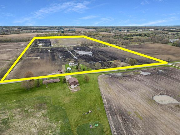 Offering 80 acres with approximately 60 tillable acres and two, all-metal, outbuildings. There is also a well and well-pit on site. The 40 x 26 pole barn has two overhead doors, cement flooring, and electric. The second pole barn has over 2,000 sq. ft. and a section with hog stalls. All vintage farm equipment and miscellaneous items in outbuildings to remain. Tillable acreage is leased until December 2023.