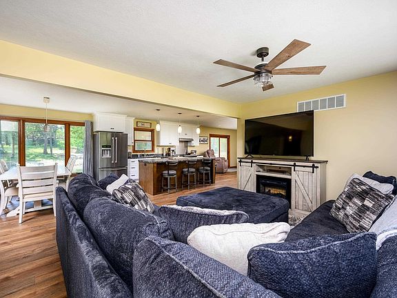 If peace and quiet with room to enjoy the outdoors is on your wishlist, this may be the home for you. This 5 bedroom, 3 bathroom home has a walk-out basement and is located on 5 acres of partially wooded land. Come sit on the main floor deck overlooking the private pond or spend some time in your newly built pole building with ample loft space. This home includes all kitchen appliances as well as a kitchenette located in the finished basement. Also included are the washer, dryer and hot tub. The pond is stocked! There is a bridge over to your private island on the pond! It's a nature lover's dream! The oversized outbuilding is the perfect spot for an at home shop or a place to store all of your toys! The massive living space in the loft has over 1000 sq feet and is the perfect spot for entertaining and relaxing! A full kitchen, full bath and laundry make this one an easy space to rent or for extra company! This home is a must see! The location and setting can't be beat! Home Details: the owner has updated and replaced just about everything in this house. NEW FURNACE, NEW CENTRAL AIR, NEW ROOF, NEW APPLIANCES...the list goes on. All appliances included in all 3 kitchens!