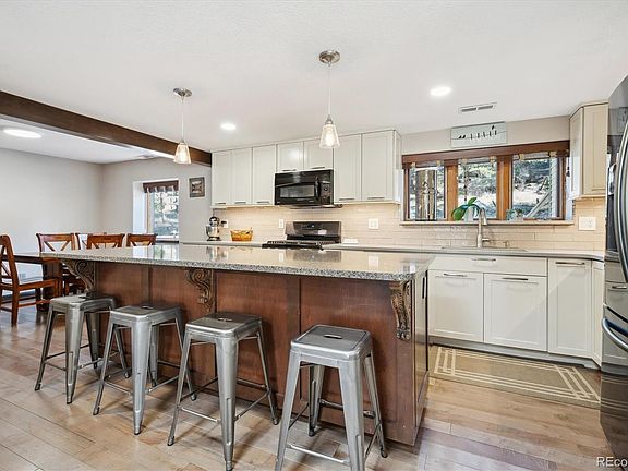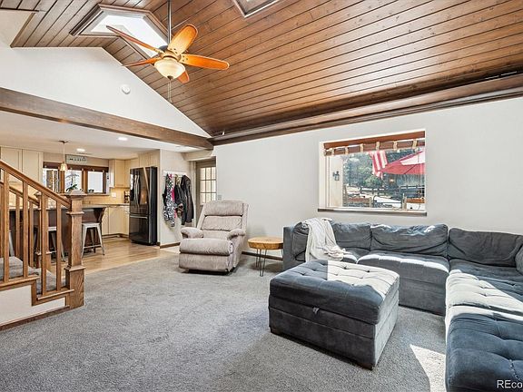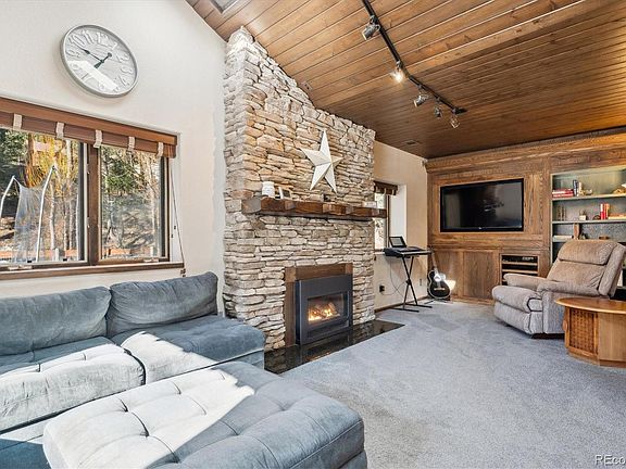 Welcome to your mountain oasis, just moments from downtown Evergreen! This beautifully updated home offers the perfect blend of convenience and tranquility, with easy access to local shops, restaurants, and year-round outdoor adventures. Spend your summers enjoying concerts by the lake and your winters ice skating under the stars at Evergreen Lake. Hike, bike, or explore the stunning Jefferson County Open Space parks right in your backyard. Inside, this move-in ready home features an updated kitchen, a spacious family room with vaulted tongue-and-groove ceilings, and a separate den, offering plenty of room to relax or entertain. The pellet stove keeps the home cozy and heating bills low. Upstairs, the primary suite boasts a five-piece en suite bath, a large walk-in closet, and a cozy home office nook. Step outside to the covered patio in the backyard, a perfect space for entertaining while enjoying the peaceful setting. The flat, fenced yard provides room to play, and a seasonal stream adds to the mountain charm. Need extra space? Above the garage, a 340 sq. ft. heated bonus room with abundant natural light is ideal for a home gym, art studio, or private office. The home is in move in ready condition and you'll have peace of mind with a whole house generator and new septic system. This home is a rare find—don’t miss your chance to live the Evergreen lifestyle with modern comforts and endless recreation at your doorstep!