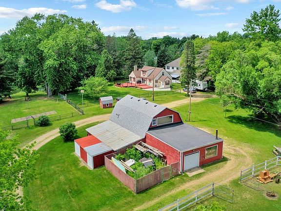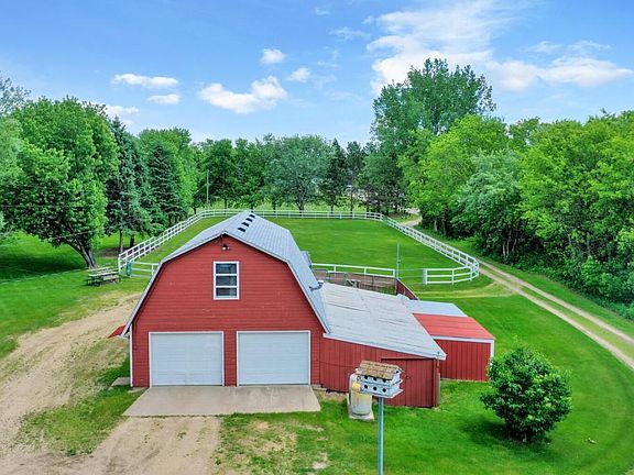 Horse property just minutes from the Twin Cities! 5.6 acres with a lovely and well maintained 1.5 story home w/lots of upgrades and amenities. The kitchen is updated with solid surface counters, stainless steel appl, 5 burner gas range. Hardwood floors, crown molding and solid 6 panel doors! The dining room walks out to a massive deck that over looks the large fenced in area perfect for pets and kids. The living room has a beautiful FP to snuggle up on winter nights. The spacious upper level master has a large tub and bath area and a huge walk in closet. The LL has a large family room and a great laundry area that has just been remodeled. The Barn complete with lots of parking and even lean to sheds w/lockable storage area for all the toys. Upstairs there is a full bar area with a huge window overlooking the 104x212 riding area. The house and barn have a 2 year old roof. The perfect place for horses and family reunions. Future development and Home business opportunities abound.