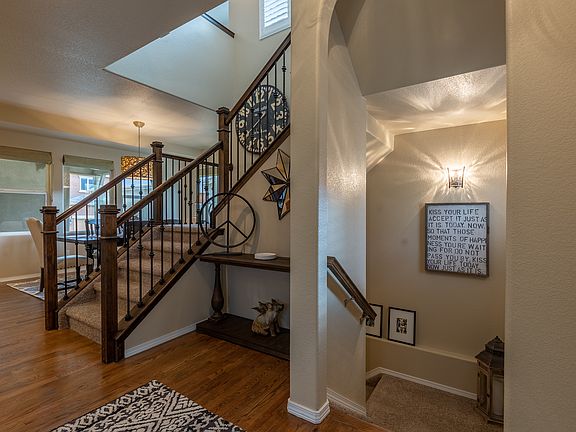 Immaculate 2-story Covington Home in beautiful Wolf Ranch with so much to offer! Many recent updates make this home feel like new! Hardwood floors in the living & dining area have been added & the original hardwoods were treated with new coating on the main floor. Custom wood framed plantation shutters have been installed on most windows throughout. In the kitchen, you will find granite counter tops, tile back splash & stainless-steel appliances. A butler pantry area & open floor plan lends itself to easy entertaining. Your feet will notice, and thank you, for the newly replaced upgraded carpets and pads throughout the living room has a walk-out to the covered patio area for outside dining/entertaining. The side yard has little to no maintenance and custom window well covers have been recently added to ensure safety. The master bedroom has an attached 5-piece bathroom with Ubatuba granite counter tops as well as a walk-in closet which boasts custom closet shelves and drawers! Next to the master is a loft/sitting area that opens to a private, roof-top deck and additional outside sitting area that overlooks the front of the house to mountain views! The basement has 9-foot ceilings and has been recently framed, insulated, and dry-walled. It also has a rough in for a bathroom which already has a bathtub. The attic & garage are fully insulated and dry-walled and 2 new large overhead storage racks have been added. A Smart-Home security and lighting system was recently installed, including external Nest cameras, Ring video doorbell, Nest thermostat, WEMO light switches, and electronic keypad on front door. The Central Humidifier integrated in the furnace will help you stay comfortable during dry Colorado winters. This wonderfully updated home is a must see!