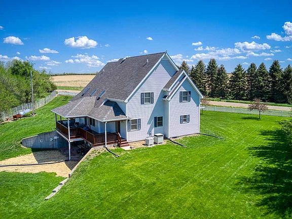 Welcome to the GOOD LIFE! Sitting majestically on the prairie, with rolling hills and a white picket fence, you'll ask "Is this heaven?". This gorgeous 1.5 story home features quality finishings and impeccable design and character throughout. The main level features a kitchen complete with a pantry, backsplash, hand-scraped teak floors, Corian counters, and a center island. Just off the kitchen is the dining area with exit to covered deck. The living room boasts a cathedral ceiling, skylights, and an exit to covered deck. Enjoy the formal dining or sitting room with oakwood flooring and columns. On the main level there is also the spacious master suite with master bath, walk in closet and exit to deck. Don't forget the main floor laundry and exit to 2-car garage! In the upper level you'll find an open staircase and 3 bedrooms and 2 "other" non-conforming bedrooms. Two bedrooms are connected to their own bath! There is also a spacious storage area on the 2nd level as well. In the basement you will find a spacious family room and sitting area with double sided stone fireplace and walkout to backyard, a full bath, and 2 more non-conforming bedrooms. There is a spacious storeroom and weather shelter as well. Outside fall in love with the peace and tranquility while only being a convenient 7 miles from Yankton and within a few miles of other area towns! It truly is the BEST of both worlds!