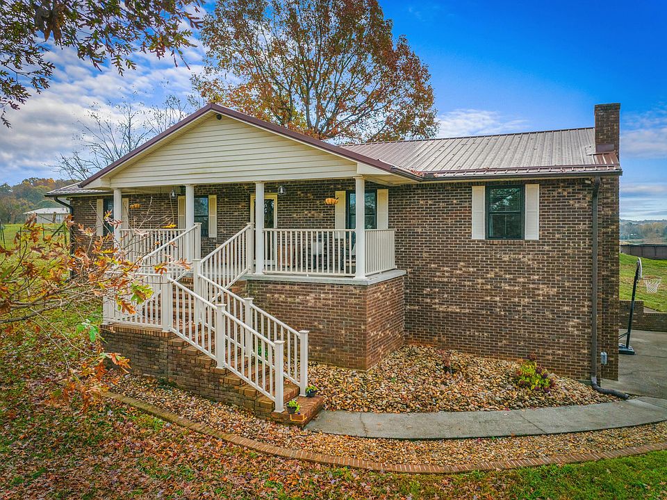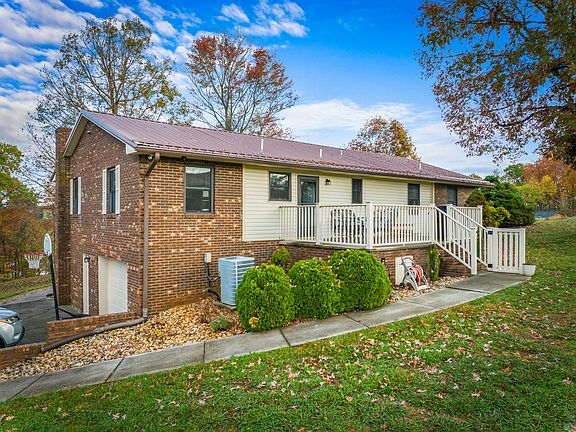 Welcome to 5572 Byrd Road! This updated 3 bedroom, 2 bathroom brick rancher home sits on 3.04+/- acres with 360 mountain views, and multiple updates including new flooring, plumbing, updated light fixtures, new A/C unit, & many more updates throughout the home! The beautifully updated kitchen features butcher block counter tops, white shaker style cabinets, stainless steel appliances, and a white porcelain sink for that perfect farmhouse style look! The spacious living room is great for entertaining, and features updated windows that fill the entire space with bright, natural light! Around the corner is a bathroom that connects to a large master bedroom that features two custom built sliding closet barn doors. Following down the hallway is two additional spacious bedrooms. Downstairs you will find the basement, second bathroom, and a large bonus room that's perfect for a fourth bedroom, game room, media room, play room, or even an office. The backyard offers multiple areas for entertaining and enjoying the beautiful East TN surroundings, but the huge 24X48 detached garage steals the show! Featuring concrete floors, spray foam insulation, ample storage, completed room/office space with a bathroom, this building is every man's dream! This property also offers a 12x12 chicken coop/storage shed with a spacious 10x12 run, small orchard consisting of pear & peach trees, strawberries, raspberry, & blackberry bushes, a flower cutting garden, & a large vegetable garden. Located in the Russellville School District, this property offers plenty of privacy, while also being conveniently located to shopping, dining, & schools! 5572 Byrd Road is a true gem and will not last long! Schedule a showing today and make this charming homestead yours! Owner/Agent