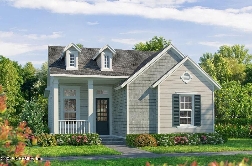 • The Nassua calls forth the nostalgia of cottage living, modernized for the 21st century. The rear-load garage, which leaves the front of the home unobstructed, and the highly pitched roof both contribute to that cottage feel. From the moment you walk up the front steps to your covered porch, the Nassua feels like home. Enter into a flex space, which can serve as a formal dining room, sitting area, or secondary living space. Two guest bedrooms and the guest bath are located to one side of the flex space, while the other leads into the open kitchen, dining, and living space. The master suite features double vanities and a huge walk-in closet. Outside, the covered lanai conveniently connects to the garage.