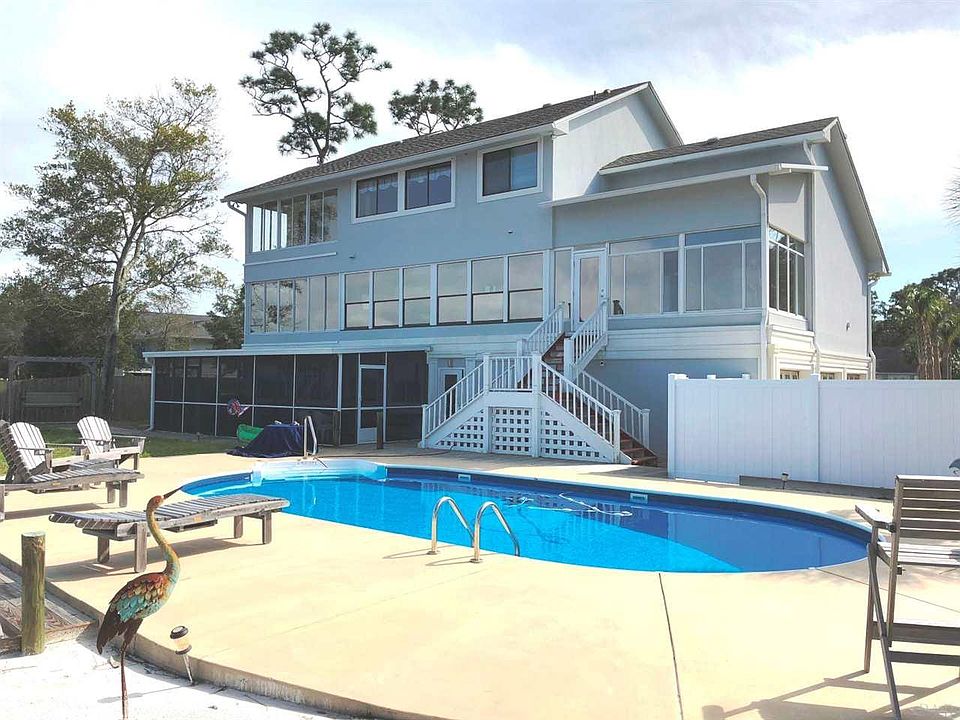Waterfront living at its finest. This is the home you've been waiting for. Over 4200 square feet of custom living. 3 bedrooms, 3 1/2 baths, formal living and dining, large family room with wet bar, huge sunroom that goes across the entire back of the home, large master with adjoining sunroom, large entertaining space on the first floor that includes a recreation room and large commercial kitchen, great outdoor space that includes a screened porch and large deck surrounding an inviting pool, 3 separate garage areas and an over 225' pier that leads to a lighted boat house with 2 lifts and a sundeck. The home has had significant upgrades to it over the past 3 years. Call today for your private showing of this amazing home.