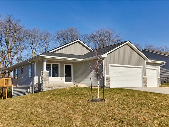 Move-In Ready! NEW, affordable, open ranch plan has: 3 beds, 2 baths, 1,350 SF finished, 3-car garage w/ openers, covered porch, covered deck on a walk out lot with mature trees in the backyard! As you walk in the home you will find vaulted ceilings w/ fan/light in the main living area, Waterproof LVP flooring in kitchen-living-baths-laundry, granite countertops, gray cabinets w/ soft close doors, center island & SS appliances w/ refrigerator. Master suite is tucked away in back of the home by the covered deck & includes fan/light, double vanity, shower, & walk-in closet. There are 2 nice sized kids bedrooms with walk-in closets on the other side of the home with their own bathroom. Off the garage is the big laundry room w/ mud bench & stairs to basement. Basement is unfinished but pre-plumbed for bath & radon. Exterior features include no maintenance vinyl siding, 30 yr. shingles, stone, fully sodded yard, concrete pad out the walk-out door & a tree in front yard. 1yr. builder warranty. 5 Year Tax Abatement included! Photos online are of actual home. Use Preferred lender: Patrick Conway 515-229-1477 and get up to $2,000 in closing costs.