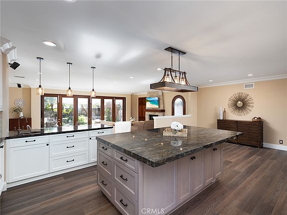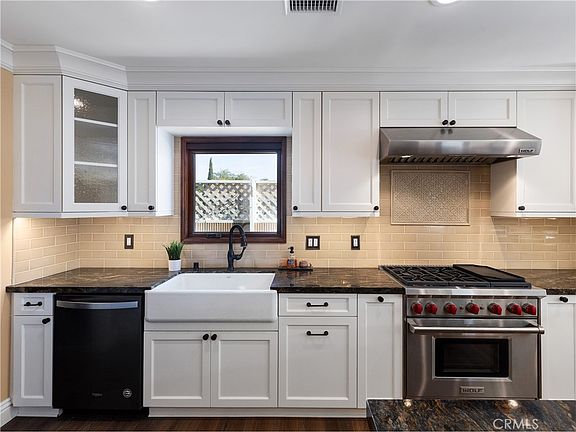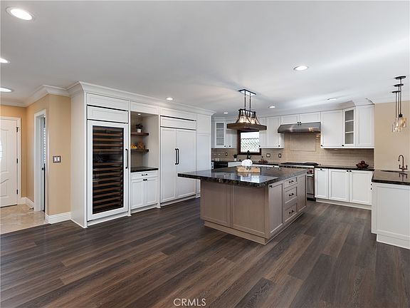 This is a home you have to experience in person to believe. Stepping up the custom stone porch and through the entryway to this masterpiece home you are immediately entering the massive true chef's kitchen. Be ready to be impressed with its massive center island and a full suite of luxury built-in appliances this space is certain to speak to the chef and entertainer in anyone. From the Built-In 300 Bottle Sub Zero Wine Cooler to the Built In Counter Depth Sub Zero Refrigerator and Freezer and the Built-in Wolf Expresso Machine and the 36-inch Stainless Steel 6 Burner Wolf Range, you'll agree that nothing was overlooked in this remodel and no expense was spared. In addition to the extra wide undermount sink, there is a copper prep sink ready for a party. The kitchen area looks out to the great room, with its travertine floor and double-sided gas fireplace, with its 9-foot ceilings the true show stopper is the 20-foot bi-fold mahogany California door, making indoor-outdoor living seamless and perfect for daily living. Concerned about bugs with such a huge door? Don't be - this massive opening has a screen that rolls out after hiding in the wall when retracted. The backyard beckons you outdoors to enjoy the massive koi pond and the covered living space, kept warm on colder nights via Infratech infrared heater and the outdoor fireplace, the built-in kitchen, and BBQ island make this a 4 season space to enjoy. Back inside this single-level home is complete with 3 bedrooms, 2 full bathrooms (Including one with an ensuite), storage galore, LED recessed lighting, plantation shutters, smooth ceilings, raised panel interior doors, and custom millwork, ceiling fans and luxury vinyl plank flooring throughout no detail has been left overlooked. This property boasts an extra-long driveway suitable for parking an RV/Trailer or Boat, the detached two-car garage is extra secure behind the gate. For the energy-minded buyer, you will be pleased to know this property includes FULLY PAID OFF SOLAR and a TANKLESS WATER HEATER. This home also has newer central heat and air- conditioning - welcome benefits on hot summer days, and cool winter nights. This is a MUST-SEE property - so reach out and schedule your private tour today.