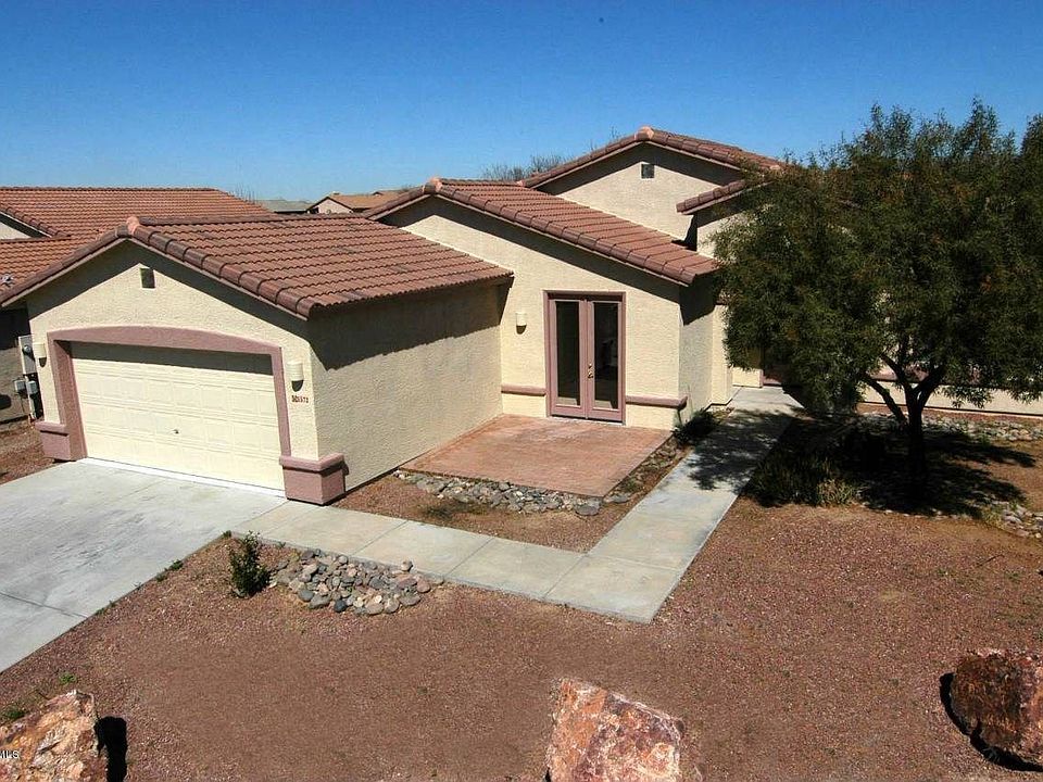 For more information on this property, contact the Listing Agent, Anna Marie Delgado at (520) 271-5786 or AnnaMarie@AnnaMarieDelgado.com. Quality built Richmond American former model home still has its charm! This 3 bedroom/2bath home has a lovely split floor plan with a great room and large kitchen. Vaulted ceilings in great room and master bedroom along with accent windows inviting natural light add to the homes ambience. Upgrades throughout the home include ceiling fans in every room, fireplace, extended covered patio, dual sinks in master bath, wired sound system with built in speakers, French doors in kitchen, and gas range. Newly painted inside and out! Professional landscaping includes decorative boulders in front and back yard and a built in grill. Not a short sale nor a foreclosure. . .this one is move-in ready and should not be missed! See Floor Plan under Virtual Tour.
