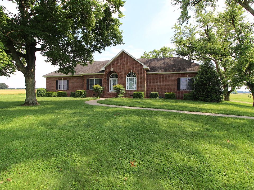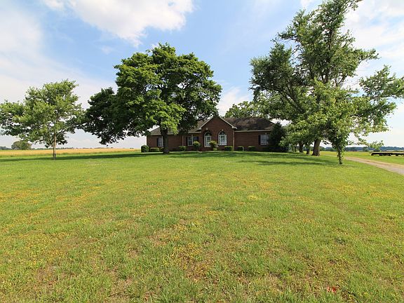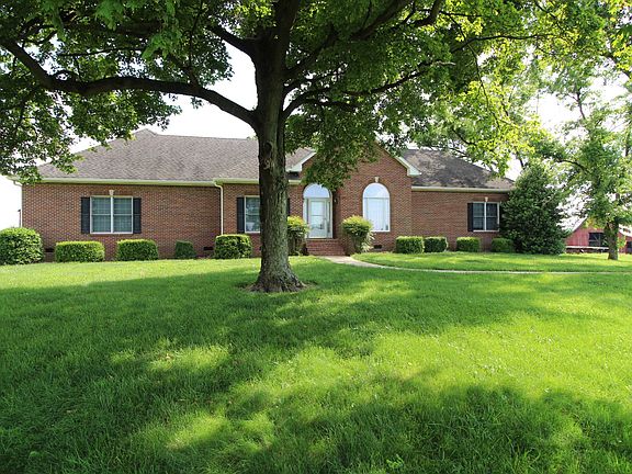 Home Sweet Home. All brick ranch home sitting on 5.38 Acres, Real Hardwood Floors in Great Room, Formal Dining Room & Kitchen.Tile in Bathrooms & Laundry. Large Great Room with gas fireplace, Kitchen has solid oak cabinets with corian counter tops & bar. Master bath with double sinks & whirlpool tub. 36x36 Tobacco Barn in great shape. Come enjoy the peace and quite.